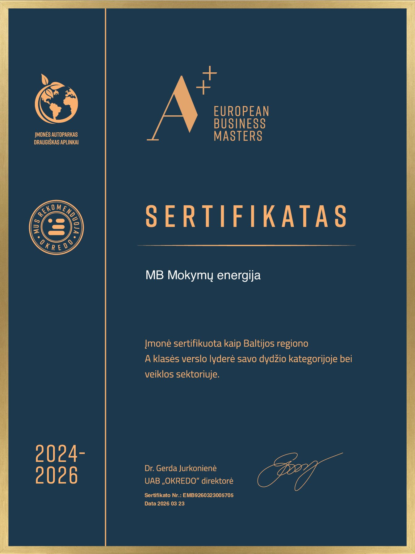 Gavome EUROPEAN BUSINESS MASTERS sertifikatą 2024–2026
